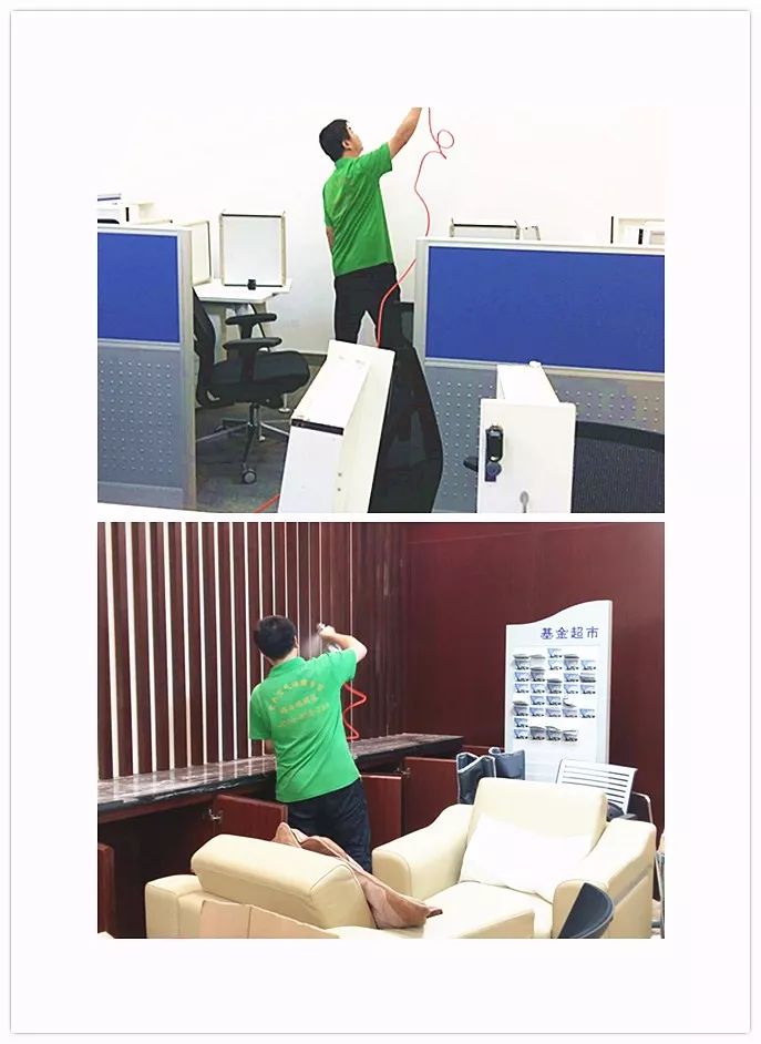 該支行的污染主要來源于室內裝修材料,還有新辦公桌椅、文件柜、抽屜等辦公家具。清除室內裝修污染,最為有效的方法,就是針對這些污染源進行根源治理。對此,格安瑞工程師使用相應的產品,對不同的污染源,進行針對性的高效治理,營造健康的室內辦公環境。